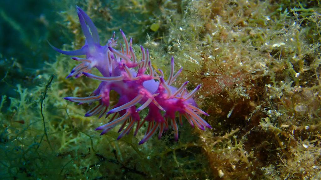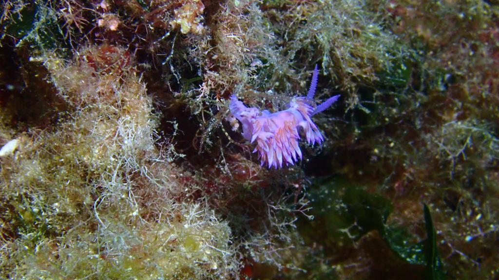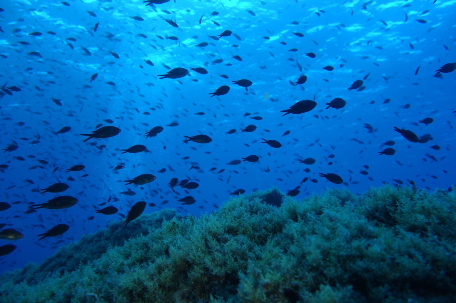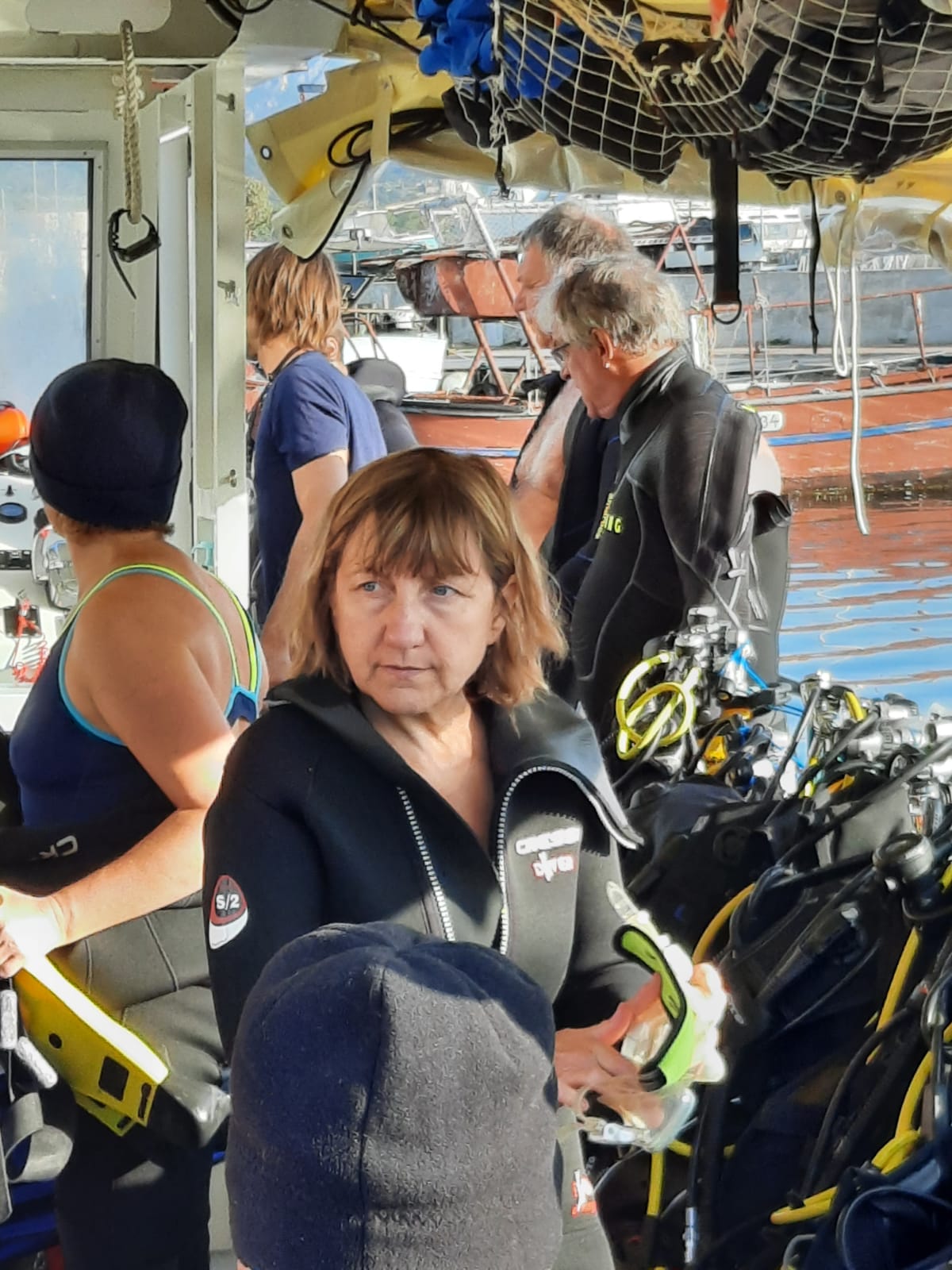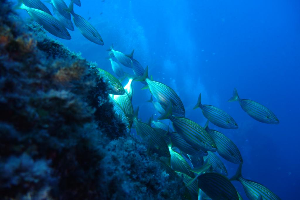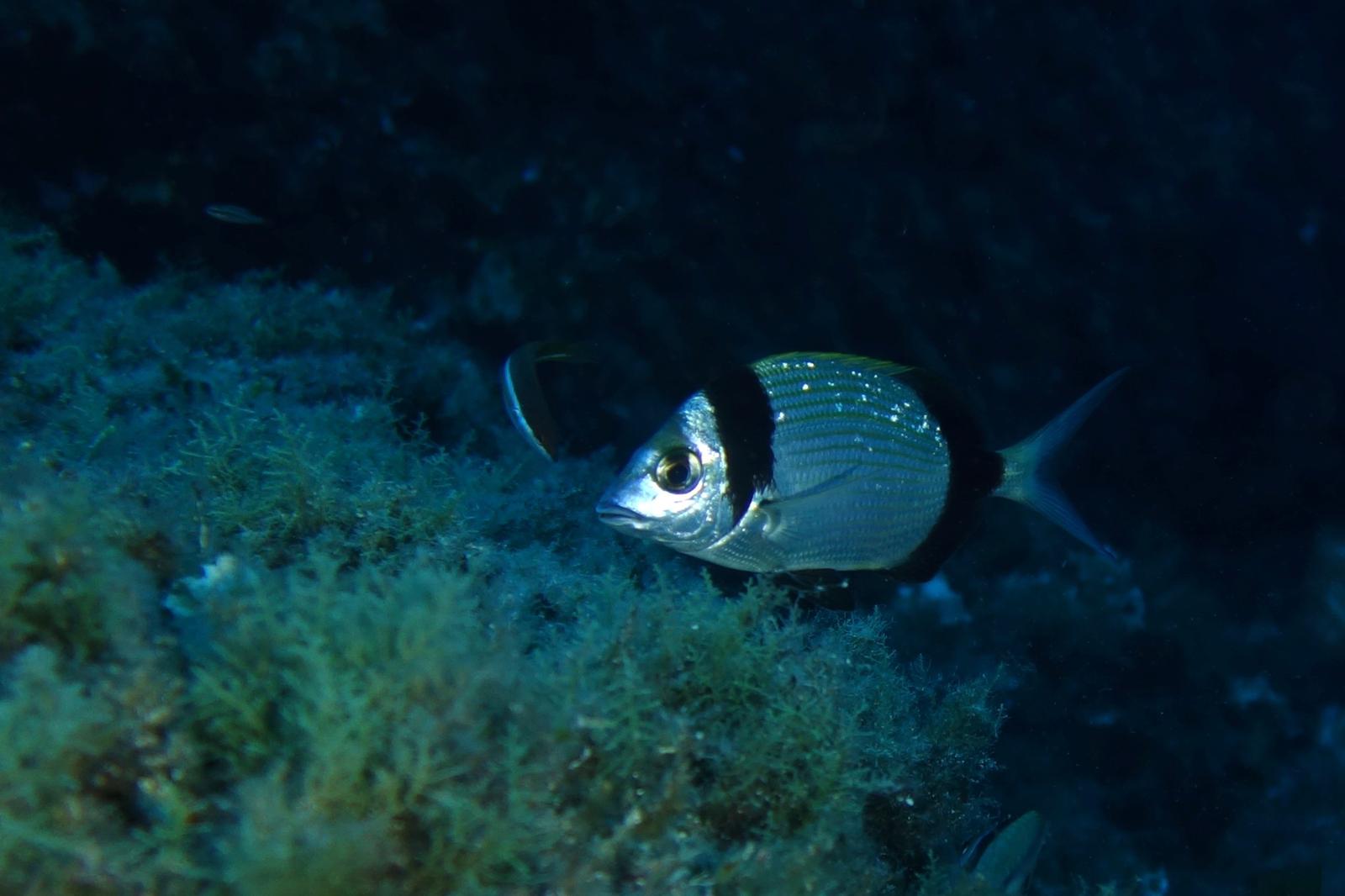 Abélia B. : Première escapade en mer. J’ai pu plonger pour la première fois en pleine mer. Après avoir surmonté l’enfilage de la combinaison mouillée, le poids du block, l’essayage du masque, et la virée en bateau sur mer quelque peu agitée, me voilà prête à sauter dans le grand bain ! Bon, je me souviens encore de Jean-Pierre m’expliquant, dans son bureau de Tenon, que la plongée est un sport de fainéant.. et que ça ne pourrait que me plaire. Je connais maintenant son obstination ( il avait su rebondir sur l’adoption du bébé chat, chose faite également), me voilà donc harnachée, prête à sauter, je n’ai plus le choix !