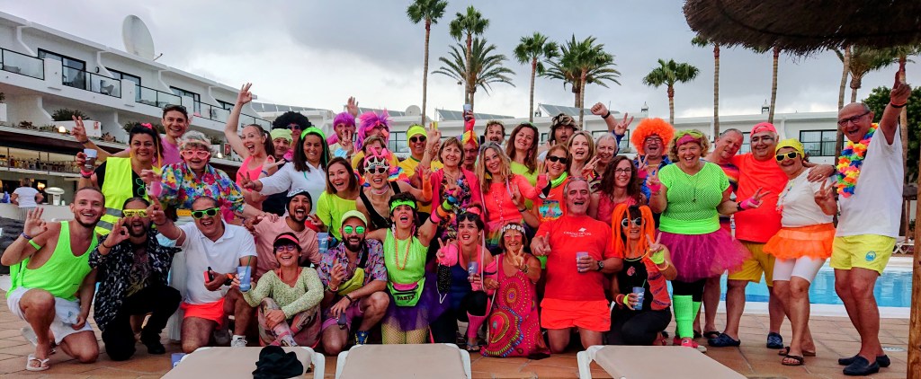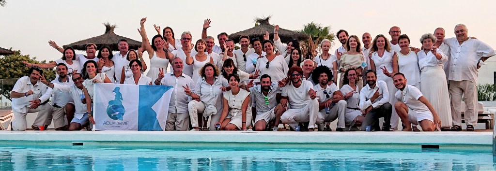 En route pour un nouveau voyage, direction Lanzarote ! Pas moins de 43 aquadémiens, de 24 à 75 ans, ont fait partie de cette nouvelle édition. Fait notoire, trois nouveaux pédiluves ont rejoint l’aventure pour tester les premières bulles en milieu naturel. Ils ont parfaitement réussi toutes les épreuves de force propres à cette académie hors du commun : plongée en pleine mer, entraînement en piscine avec accessoires incongrus, vidage de masque, levée de coude (le corps médical sait toutefois poser les limites à la consommation d’alcool !), karaoké en hommage à Jean-Jacques Goldman, chorégraphie endiablée, repas gargantuesque … Fraîchement diplômés de leur niveau 1, ils font maintenant partie de cette grande famille Aquadémie et sont prêts à accueillir à leur tour de nouveaux membres. Car, avant tout, il s’agit bien de partage, de rire et de bienveillance pour se reconstruire après l’épreuve du cancer. Rien de tel que la plongée pour sortir la tête de l’eau après la maladie